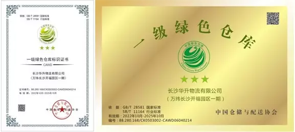 万纬长沙开福冷链园区绿色三星认证证书及牌匾