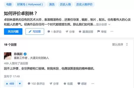 在喜剧圈里,老艺术家陈佩斯出了名的低调,连微博号都没有。不过今天,他干了件挺不一样的事儿—跑去知乎和网友讨论问题。在知乎问题“如何评价卓别林?”下,他写了一个意味深长的回答。