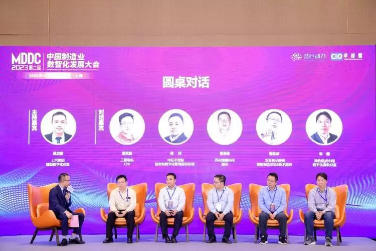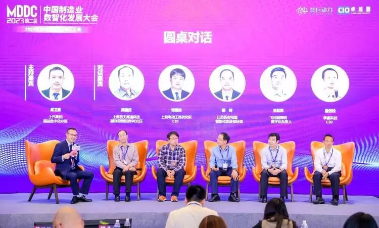 特邀圆桌主持嘉宾上汽集团精益数字化总监吴卫星、对话嘉宾三菱电机CIO范天益、中亿丰控股集团信息和数字化管理部总经理任川、苏州璨曜光电副总张玉柱、双环传动股份智能制造总监&技术副总崔永龙、捷豹路虎中国数字化高级总监车毅从数字化人才梯队的建设,Chat GPT 对制造业带来的机会以及如何推进只能工厂建设等问题展开互动讨论。