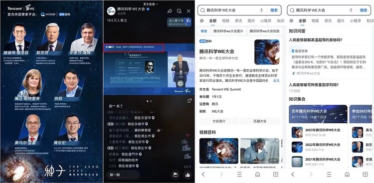 为帮助现场和线上用户更好地理解大会内容,作为大会的官方内容搜索平台,QQ浏览器也同步推出“WE大会知识补给站”专题活动,联合科学专家团,扩充并更新了21个科学百科词条。通过丰富的文字、图片和视频等多模态内容的百科和问答结果,为观众提供内容丰富的“知识库”。通过QQ浏览器,观众可与专家学者一起,更好地理解科学的最新突破与未来展望。