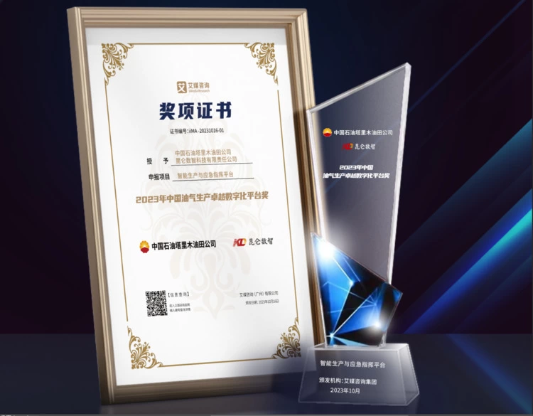 塔里木油田公司与昆仑数智荣获艾媒2023年中国油气生产卓越数字化平台奖