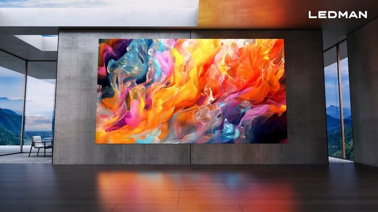 应用PM驱动玻璃基Micro LED显示屏的220英寸雷曼超高清家庭巨幕分辨率为3840*2160,亮度达600nits,可视角度超过170°,色域为90%DCI-P3,屏体显示面防护等级达到IP65。从产品整体性能上看,雷曼玻璃基Micro LED家庭巨幕在亮度、分辨率、色域、防蓝光、响应速度和使用寿命上均有卓越的表现。