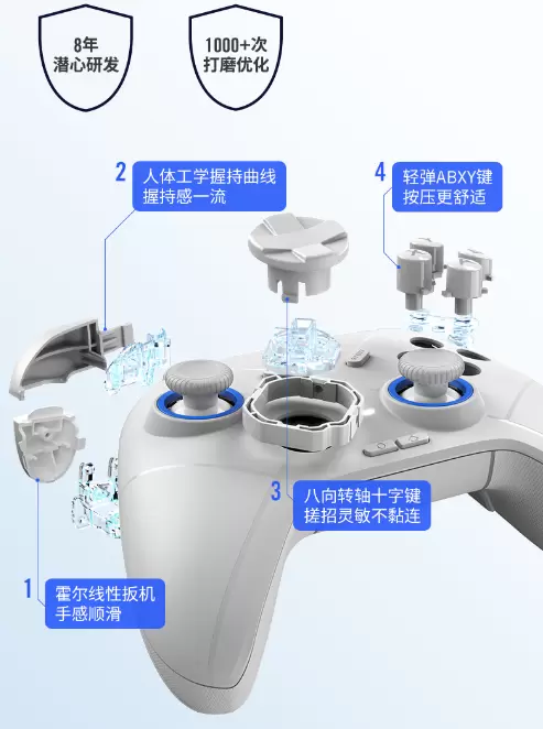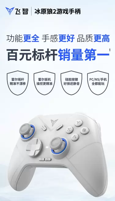飞智持续探索手柄领域的技术创新的同时,也在坚持积累手柄设计的基本功。第一代飞智冰原狼游戏手柄满足了百元级好手柄的三大核心——功能全,手感好,品质高。填补了“百元级价位,全面优秀手柄”的行业空白,一经上市便霸榜京东销量第一,成为行业内的标杆产品。此次面世的飞智冰原狼2游戏手柄,正是以飞智深耕手柄力学研发的8年沉淀为基底,更继承了飞智精英手柄的力学技术,推动三大核心全面进化,实现功能更全、手感更好、品质更高。