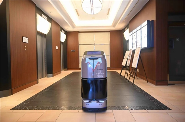 高端酒店的口碑建立不是一日之功。非凡的品牌价值背后是数十年积淀、大量投入、不断深耕服务的结果。东京湾喜来登酒店“定制”设计了机器人品牌外观,身着优雅且调性统一的喜来登“酒店管家形象”的擎朗酒店机器人W3,成为高峰接待方案的完美拼图。
