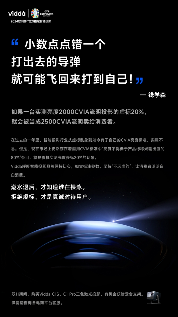 双十一Vidda呼吁智能投影明确标注亮度 让用户明明白白消费
