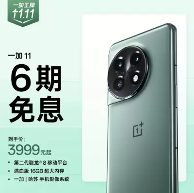 此外,未来性能引领者一加 11 同样可享 6 期免息,3999 元起即可入手。多款一加 IoT 产品同样畅享双 11 狂欢:一加 Buds Ace到手价 194 元;27W 冰点散热背夹到手价仅 179 元;搭载丹拿共研声学系统的一加 BudsPro 2,双11 到手价 739 元;备受游戏玩家好评的一加液冷散热器磁吸版 499 元即可拥有;100W 双口充电器双 11 到手价仅需 219 元。
