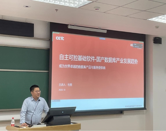 近日,北京信息科技大学计算机学院特邀人大金仓总裁杜胜为2023级新生做国产数据库产业发展趋势专题讲座,学院党委副书记兼副院长(主持学院党委工作)梁旭、党委副书记邵飞、教学副院长侯霞和辅导员李媛等出席讲座。