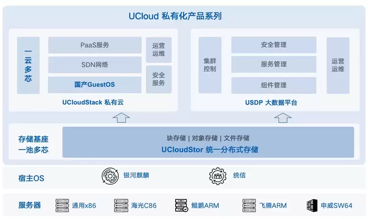作为信创工委会的正式成员单位,UCloud积极参与信创生态的建设。在支持海光x86的基础上,UCloudStor新版本完成了鲲鹏ARM、飞腾ARM及申威SW64国产芯片的适配兼容,实现了存储基座的一池多芯,为信创云、信创大数据平台等场景提供稳固可靠的底座,助力企业快速构建自主可控的数字基座、全方位赋能企业数字化转型,实现业务创新发展。