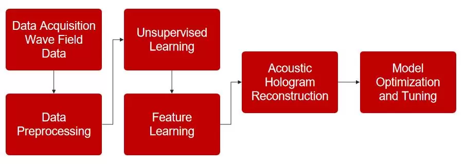 据悉,微美全息(NASDAQ:WIMI)推出的基于无监督波场深度学习的声学全息重建技术关键特点是其能够自动重建声学数据的全息图,无需复杂的监督学习或人工干预。它的独特之处在于利用了无监督学习方法,通过深度学习算法自动学习声学波场数据中的模式和特征。这一创新不仅大幅提高了声学数据的处理效率,还能够应用于多个领域,包括医疗诊断、材料检测和无损检测。基于无监督波场深度学习的声学全息图重建技术的逻辑和原理如下: