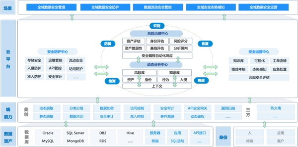 围绕资产分类分级建立统一的敏感资产视角,形成敏感资产画像和访问基线,结合敏感资产访问控制、脱敏、加密、访问审计等能力进行全阶段风险防护,实现高价值数据细粒度的实时动态监测与防护。