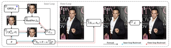 此次传音影像部在ICCV上发表的论文MetaF2N充分利用了人脸本身五官所具有的结构性先验,在模型的训练及推理过程中加入了元学习(Meta-Learning)框架,通过人脸特有的先验信息对整张图像的退化类型进行了隐式估计。同时,MetaF2N还利用人脸权重估计网络MaskNet对人脸先验信息进行了评估与权重分配,来预防不准确的人脸先验信息对结果产生的负面影响,并在对应的数据集上实现了领先的图像超分辨效果。