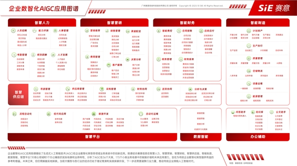 据介绍,赛意谷神实验室已结合赛意信息在智慧人力、智慧营销、智慧财税、智慧供应链、智能制造、数据智能、智慧平台7大核心领域和1个办公辅助的实际场景和业务特性,分析了AIGC在36个大类,175个小类业务场景中的赋能价值和未来应用潜力,旨在为传统企业数智化转型提供有益的参考和借鉴。下一步将持续凝聚行业力量,推动传统企业拥抱人工智能时代。