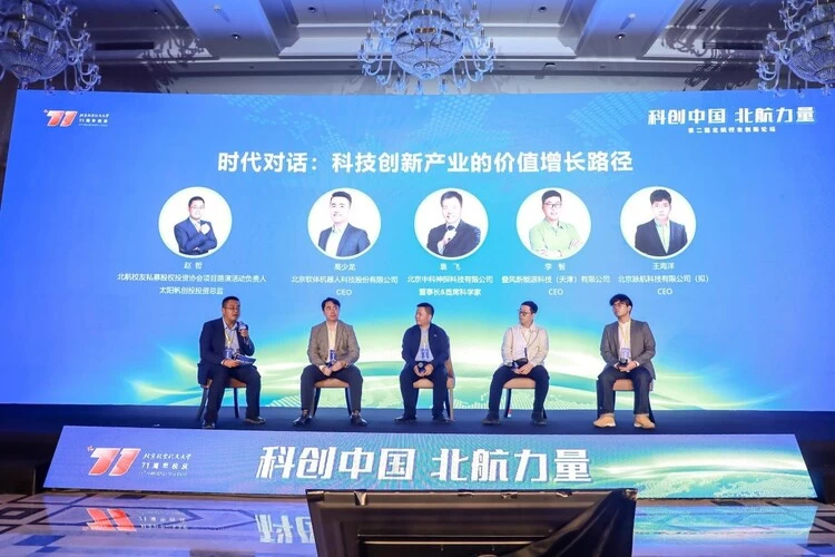 接下来的时代对话环节由北航校友私募股权投资协会项目路演活动负责人、太阳帆创投投资总监赵哲担任主持。来自不同领域的专家学者和业界精英,共同探讨科技创新产业的价值增长路径。