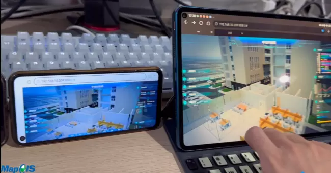 通过云渲染技术,可以使用轻量级终端如手机、Pad、VR等设备通过浏览器就可以访问高逼真的数字孪生场景。下面就是MapGIS研发工程师通过不同的终端同时访问基于BIM数据的数字孪生园区业务系统。你看,使用云渲染的场景,只需要拿出手机马上就可以快速地展示高质量的数字孪生系统,演示流程高效便捷,再也不需要携带昂贵笨重的硬件设备啦。