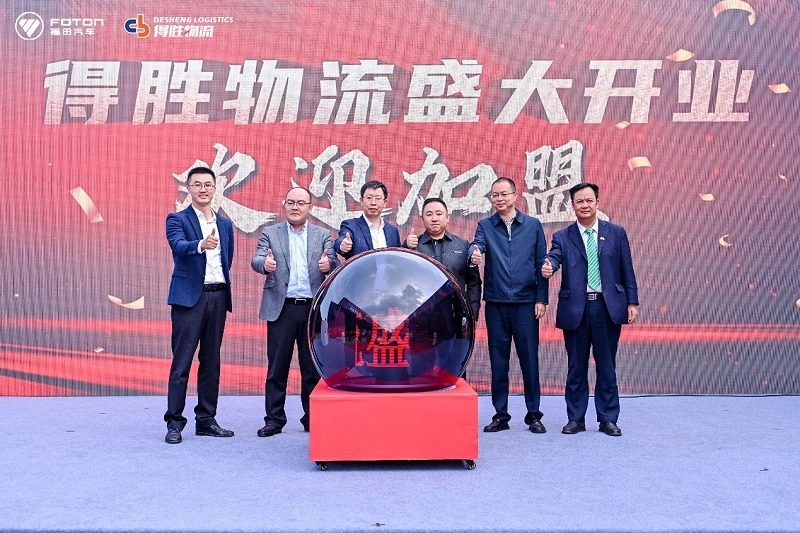 万众瞩目之下,得胜物流公司开业仪式隆重举行,福田汽车集团副总经理王术海与得胜集团总裁赵传国、得胜物流董事长张翔等出席活动的领导嘉宾一同上台,共同见证这一辉煌时刻。
