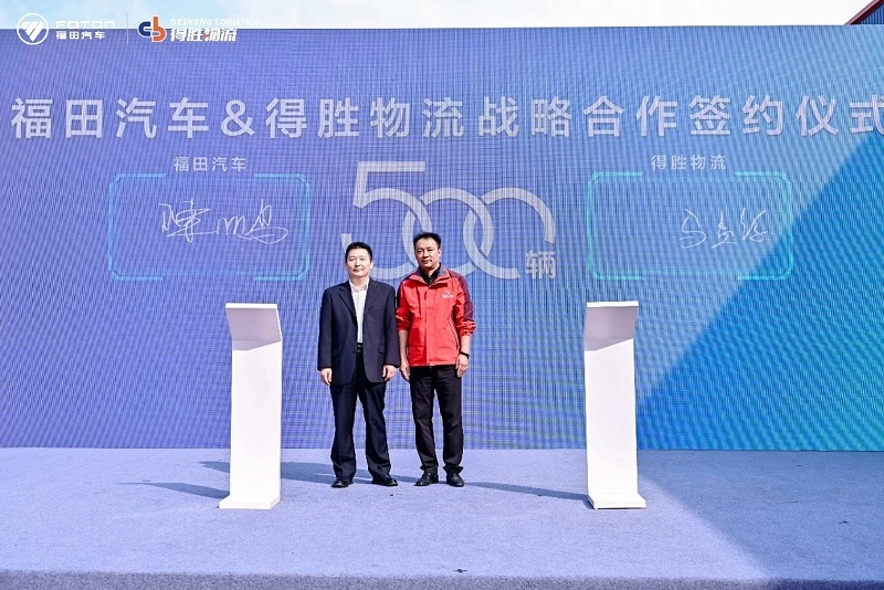 随后,现场举行福田汽车与得胜物流500辆新能源物流车战略合作签约仪式,福田汽车将与得胜集团携手,共建绿色物流新生态。