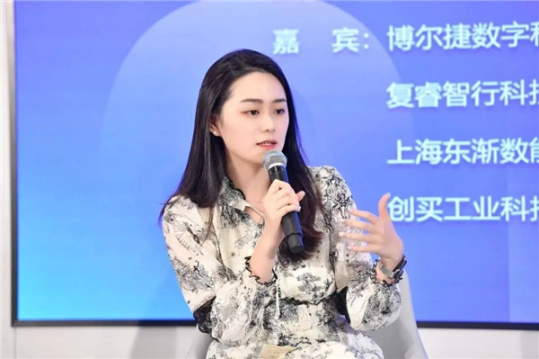 博尔捷数字科技集团欧孚科技总经理Laura代表集团出席本次活动,并担任本次大会圆桌讨论环节的嘉宾,她与复睿智行科技 (上海)有限公司、上海东渐数能集团有限公司、创买工业科技(上海)有限公司的高管们一同探讨了“数字驱动虹桥国际商务区产业经济的创新与升级”这一主题。