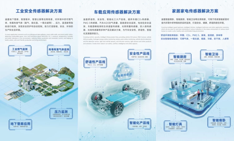 近几年,汉威科技在传感器研发创新方面动作不断,陆续发布了多系列传感器创新产品,比如激光传感器、车载传感器、光电传感器,还有柔性传感器、MEMS传感器、超声波传感器,并已经形成多系列传感器解决方案、智能仪器仪表产品及物联网综合解决方案,广泛适用于燃气、水务、工业、储能、家居家电、医疗健康、汽车、消防等领域。