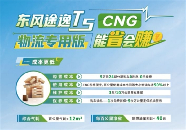 根据稳驰物流的使用数据来看,东风途逸T5 CNG车型为其带来的经济效益确实不容小觑,一公里的气耗成本大约只有3毛左右,相比油车一公里便可节省出8到9毛,百公里省钱高达几十元,公司一辆车一年的运行里程大约在10万公里,不到两年的使用时间便能够节省出一辆车的价格。