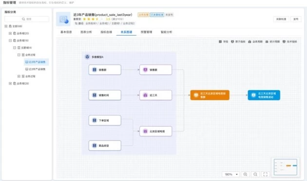 平台将指标拆分成更细粒度的原子指标、统计周期、业务限定去管理,提高指标的开发速度,提升指标的复用性、统一指标的业务和技术口径。如果指标异常,还能实现指标溯源,同时提供了从指标标准到定义到管理的完整能力。