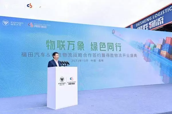 在各方见证下,昆明市政府、福田汽车以及得胜物流共同成立了“西南区域绿色物流保障联盟”,旨在实现物流运输的低碳化和智能化,聚焦云南地区绿色物流细分领域,打造全应用场景的绿色低碳运输工具,带给用户智能绿色的末端物流运输体验。
