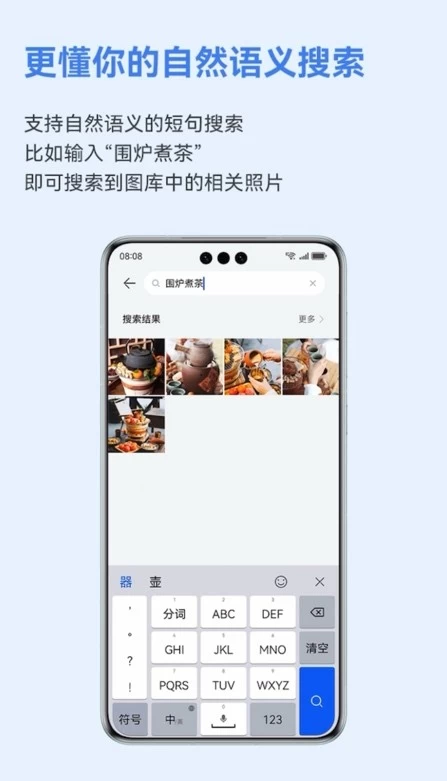 在一些特殊情况下,用户想要的图片会因为画面元素丰富、颜色众多而无法通过关键词来查找,或是在尝试通过关键词查找后,搜索结果依然有千百张图片,需要用户肉眼来一一进行查找。 HarmonyOS 4图库搜索全新升级后,在支持文本搜索的同时还支持语义搜索,这也就意味着用户对于图片的搜索将不限于关键词的查找,当在搜索框内输入类似“围炉煮茶”的短句,系统也能进行图片搜索,操作简便灵活。这对于一些摄影爱好者来说,在千百张图片中通过画面描述来寻找自己想要的图片,也将会变得非常轻松。