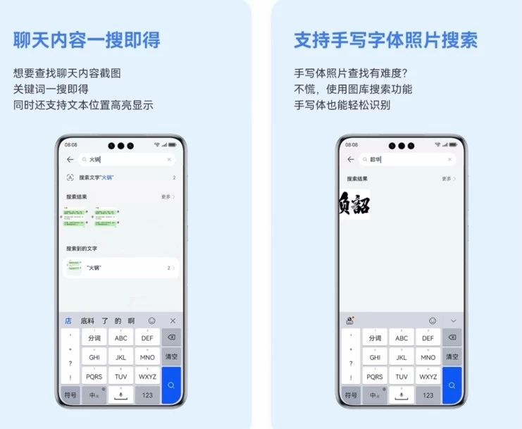 过去在搜索图片过程中,很多用户会根据“人像”或“地点”等具象词语进行图片搜索,然后在系统提供的搜索结果中找到自己的图片。然而面对对话截图、文字图片等内容,搜索结果往往并不尽人意。在HarmonyOS 4全新升级图库搜索功能中,用户再无需依赖肉眼查找,只要在搜索框内输入对话关键词,搜索结果就能展示出带有关键词的聊天对话截图,点击进入图片,还支持文本关键词高亮显示;同理带有手写体的图片,相同的方法系统也能轻松识别快速定位,让用户所搜即所获。