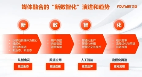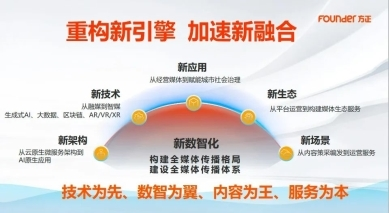 数据服务与智能化并举的“新数智化”新阶段,方正电子将继续秉承“技术为先、数智为翼、内容为王、服务为本”的理念,通过前沿技术与媒体业务场景的深度结合,以新数智化引领构建全媒体传播格局,建设全媒体传播体系,加速媒体向数智化转型发展,为全新智媒赋能!