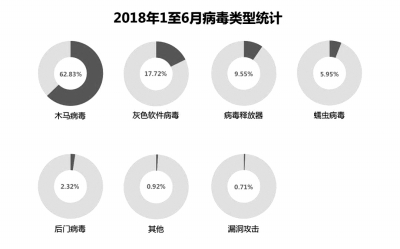 日前,瑞星对全球以及中国2018年上半年的网络安全事件进行了梳理,并根据瑞星安全系统截获的样本发布了《2018年上半年中国网络安全报告》。《报告》显示,今年上半年,恶意软件和恶意网址数量依然巨大,木马病毒依然是第一大种类病毒,恶意网站数量在全球排前列,信息窃取类和资费消耗类病毒在手机病毒中占比较大,挖矿病毒成为新增网络威胁。此外,漏洞利用更加广泛、物联网病毒增多将成为未来网络威胁的新趋势。