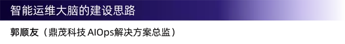 鼎茂科技AIOps解决方案总监 郭顺友,分享《智能运维大脑的建设思路》。详细介绍了如何构建企业级的智能运维大脑,并分享了在多个行业的落地实践。