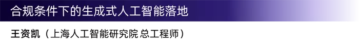 上海人工智能研究院总工程师,王资凯,分享《合规条件下的生成式人工智能落地》。