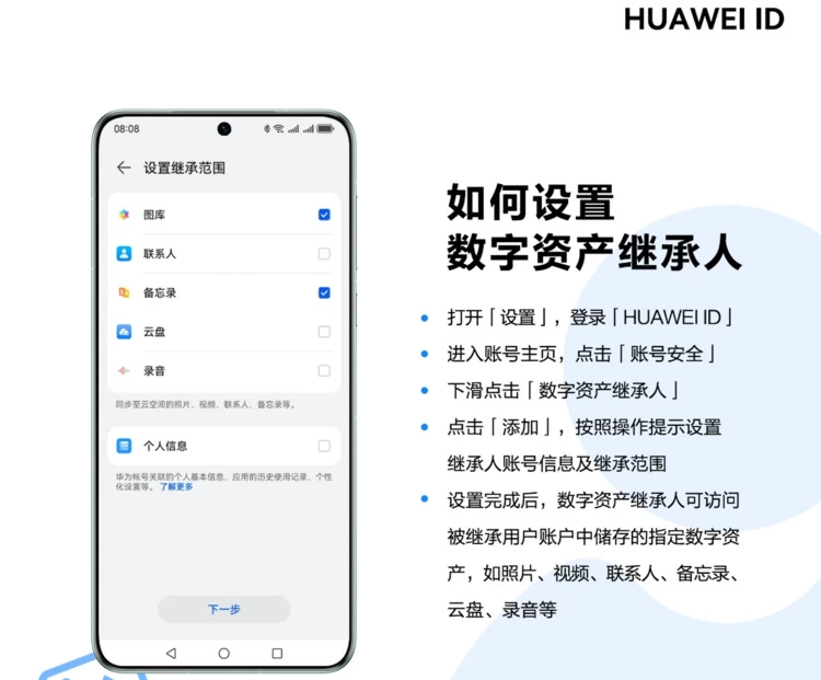 华为提供更完整的保护,让个人数字资产可被继承