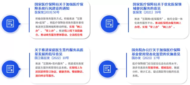 近年来,国家部门及各地政府也出台多项政策,推动电子签名在数字政府的实践应用。其中,医疗保障属于数字政府的重要组成部分,亟须数字技术赋能医保改革,推动医疗医药服务模式创新。