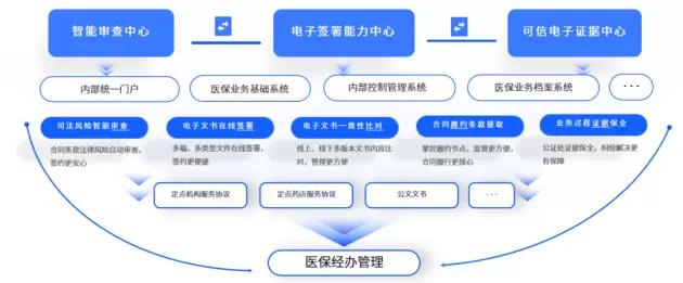 医保相关合同协议审查、参保单位内部证明文件在线盖章、医保相关证明在线存证。