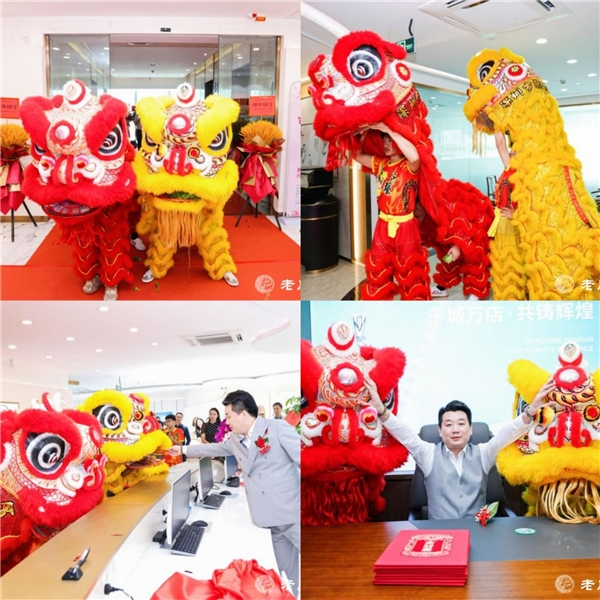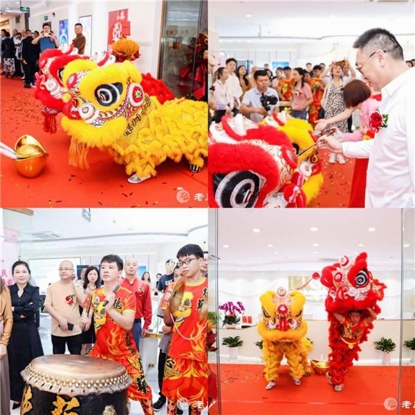 祥狮纳彩、瑞狮吐福,两只可爱的祥狮为老凤皇珠宝送上祝贺。