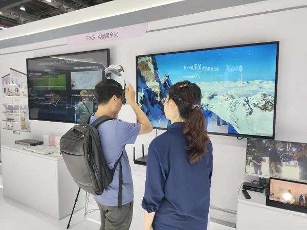 就带宽来看,8K 3D直播信号所需带宽是8K 2D信号的两倍,是4K 2D直播的8倍,这就需要将万兆接入,即将现有的10G PON网络升级至50G PON。50G PON网络提供的超大带宽、超低时延和超低抖动能力,可为8K 3D摄像头提供稳定的超千兆回传带宽,并支持多路并发的8K 3D直播信号无损回传至控制和分发中心。在8K 3D直播信号回传和分发后,用户可以选择通过VR、裸眼3D Pad或裸眼8K 3D电视,体验到超高清实时沉浸式画面。2023世界VR产业大会现场,该方案吸引了众多参会观众驻足体验。观众纷纷表示,希望该应用尽早普及。基于50G PON万兆网络的3D应用不仅可应用于直播,在3D体感健身、3D数字人互动学习以及未来3D视讯等各领域也有广泛应用前景。行业已开始积极探索,预计很快就会走入大众生活。