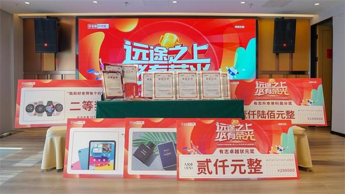 好老师升学帮是好老师教育旗下学历提升业务主营品牌,在全国拥有包含安徽、重庆、云南、河南、山东、浙江等在内的20余省专升本分校,设有700余家线下直营教学门店,已累计帮助百万余名学子追求自己的本科梦想。优秀学员颁奖典礼,是好老师升学帮各大分校每年都会坚持举办的大型学员活动,旨在嘉奖品学兼优的学员,激励追逐梦想的青年学子继续奋斗。本次颁奖典礼,好老师升学帮安徽分校共计为21位在2023年安徽统招专升本考试中取得优秀成绩的学员颁发了奖学金,包含“有志卓越状元奖”“有志升本单科高分奖”“有志圆梦院校奖”“远途上岸奖”四大奖项,其中最高奖项“有志卓越状元奖”奖学金金额达2000元。