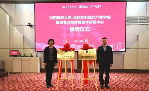 在与会领导的共同见证下,校企双方正式签署共建现代产业学院战略合作协议,并为“沈阳建筑大学-北控水务现代产业学院”及下设的“管道非开挖修复技术研发中心”揭牌。