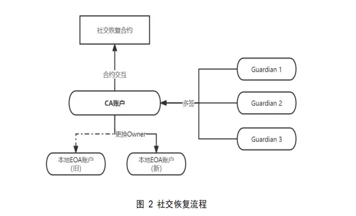 早在以太坊创立之初,Vitalik就通过EIP(以太坊提升协议)-101提出了货币与加密抽象的设想。账户抽象的本质是分离账户的签名权和所有权,从而实现更加便捷的使用体验。用户使用一个CA账户作为主账户,一个EOA账户作为CA账户的Owner进行签名,通过智能合约设置更换Owner恢复CA账户的逻辑,实现无私钥智能账户。