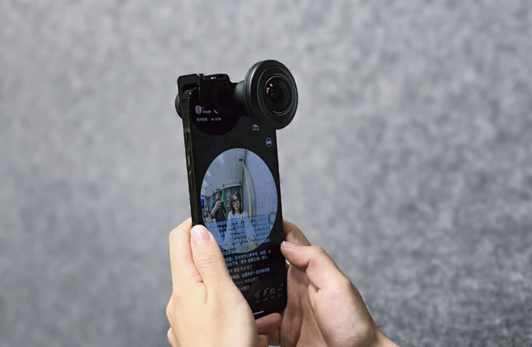 基于此,抖音与知名硬件厂商斯莫格SmallRig深度合作,联名推出了手机VR开播的硬件设备,iPhone手机搭配鱼眼镜头及配件,即可轻松开播。这套手机方案,采用了200°高清鱼眼镜头,超广视角让更多画面信息尽收眼底,带来沉浸式的直播体验。而M卡口的设计,也更方便主播快速安装镜头。