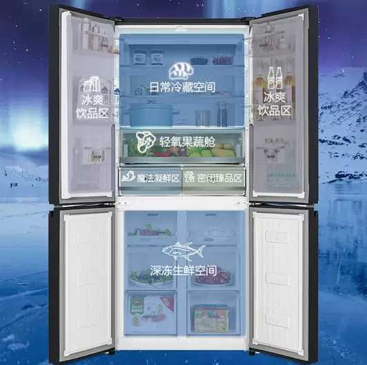 首先,让我们聊聊这款冰箱的外观。BCD-516WPQG采用了现代时尚的设计,其奇域紫的外观,无疑为你的厨房增色不少。这款冰箱采用了十字对开门的设计,这不仅在视觉上增加了整体美感,还极大地提高了储物空间的可用性。你不再需要弯腰或者翻找整个冰箱来找寻所需的食材,所有东西都井然有序地摆放在你眼前。