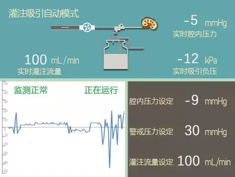 医为特实现灌注吸引一体化,通过智能控压技术解决了传统手术中的痛点:灌注流量小,视野差,钬激光热损伤,碎石效率差;灌注流量大,肾盂压力高,肾裂伤外渗,尿源性脓毒血症。智能控压技术根据泊努利原理,巧妙地实现了在满足手术需要的足量灌注下肾盂内安全压力。