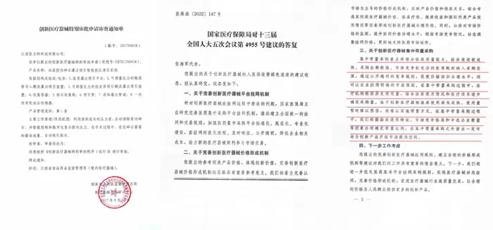 医为特智能控压清石系统于2017年通过国家创新医疗器械特别审批程序(201700038),“一次性使用输尿管测压导引鞘”属于国家创新医疗器械产品,与普通输尿管导引鞘医保分类不同,不在集采范围。国家医保局在对第十三届全国人大五次会议第4955号建议的答复中强调,予以创新医疗产品更多的市场空间。