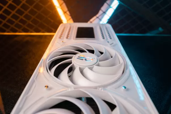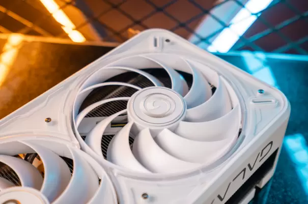 影驰 20周年 GeForce RTX 4090此次的组成也极具特色。风扇分为正反两面放置。显卡正面设有2个同样大小的100MM*2环形20周年专属风扇,加强核心动态频率的提升幅度的同时静音稳定。而背面采用了90MM环形风扇进行散热,实现抽风以及无阻挡散热!达到高速的进出风循环,增大进风量进一步稳定显卡温度。风扇均支持智能启停技术,降温控制显卡温度的同时,能够给与玩家一个优异的静音游戏环境。