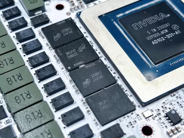 该卡配备 12 颗 2GB精选优质颗粒的GDDR6X,位宽为384-bit,共24GB超大显存为玩家和创作者们均带来了充分且优异的性能输出。显存频率高达21Gbps,让影驰 20周年 GeForce RTX 4090 的游戏性能或生产力达到目前的巅峰,轻松解决玩家和创作者们所会面对的各种复杂和极端的运行加载需求。