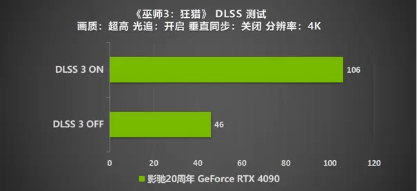 而在4K模式下,如果仅凭显卡自身的性能想要拥有高帧成绩显得有些许的吃力。成绩来到了46帧的分数。由此可见这款经典之作的更新升级,在制作上豪华了不少。但玩家也无需担心,通过NVIDIA DLSS 3质量模式的加持后,帧数直破百帧,来到了106帧的良好表现。