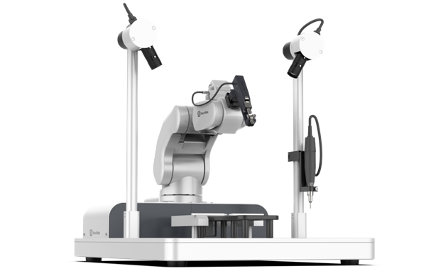 首先,「智能手术机器人」采用双目视觉识别定位,结合360°全方位串联机械臂,无需过多的人工干预,便可实现机器的自动操作。不仅如此,「智能手术机器人」还配备了统一接口的快换装置,可自由切换手术实验所需要的颅钻、植入仪、光纤、微型注射器等工具。整个操作过程智能便捷,省时又省力。