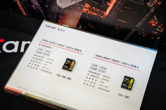 在现场我们可以看到,Lexar雷克沙在活动展厅搭建了产品展示专区,带来了多款Lexar雷克沙旗下的热销产品,像各位影像创作者熟知的CFexpress Type B存储卡GOLD系列以及SILVER PRO SD UHS-Ⅱ存储卡等产品均出现在了现场。活动也引来了众多影像爱好者围观,大家一同探讨了影像存储的魅力。