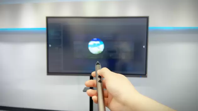 在其他细节方面,皓丽针对用户会后对开会内容的即时调用查看、复盘考虑得更多,白板文件/图片/PDF的多种保存格式,会后查阅会更方便。在白板书写体验上,皓丽企业版配备的智能笔书写细腻,书写响应同步。在配件上,皓丽比maxhub的智能笔功能考虑会更人性化,比较好用的一个地方是可以在PPT演讲时可以虚拟激光笔(手势图标),同时支持放大镜功能,可以放大重点,讲到关键点非常直观,