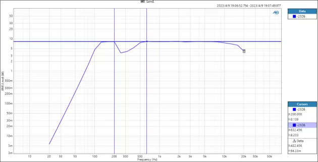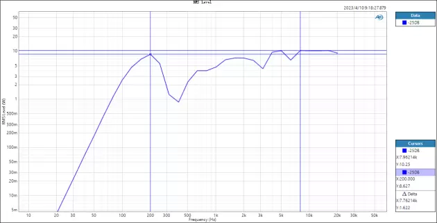人的听觉范围为20-20kHz,因此,频响曲线测试范围为20-20KHz。典型的频响曲线如下图所示,横坐标为声压值,纵坐标为频响: